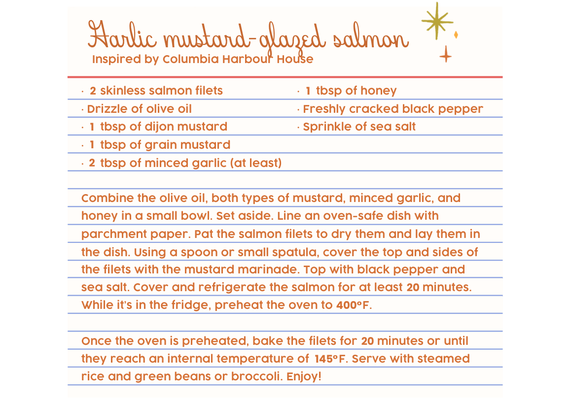 We’ve been eating more fish this summer and one of our go-to recipes is one that’s inspired by the maple mustard-glazed salmon at Columbia Harbour House in the Magic Kingdom. After trying it during our May trip, we immediately recreated it (with a couple alterations) once we got home. Below is the recipe that we follow: